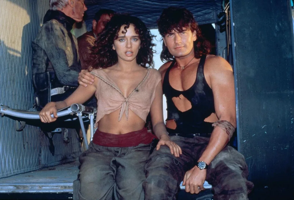 Fotografia zo zákulisia natáčania Valerie Golino a Charlieho Sheena z filmu Hot Shots! (1991). Natáčanie stálo asi 26 miliónov USD, no producentom sa táto suma vrátila sedemnásobne.
