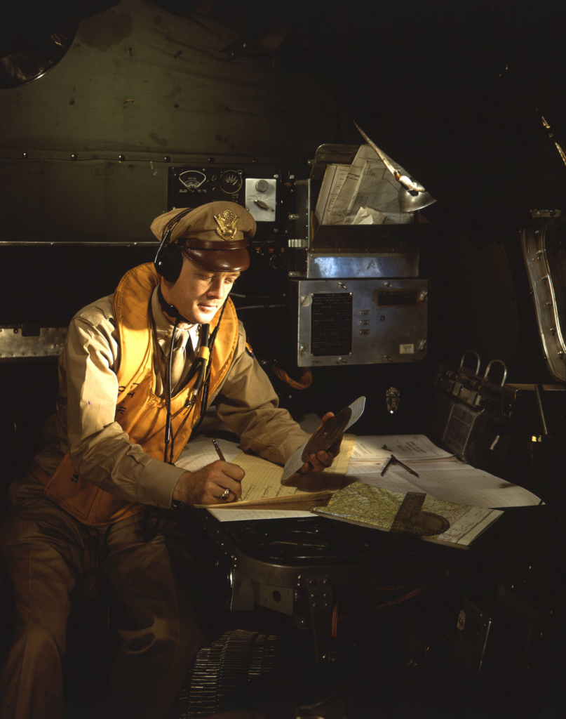 V “lietajúcej pevnosti” B-17 bol navigátorom dôstojník (často poručík alebo vyšší), ktorého úlohy zahŕňali vykresľovanie kurzu lietadla pomocou máp, kompasov, odhadu a rádiových signálov.