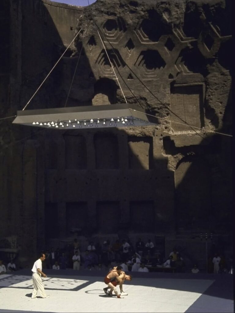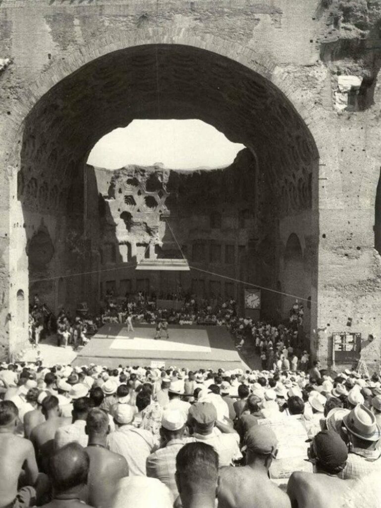 Grécko-rímske zápasnícke zápasy, ktoré sa konali v ruinách Maxentiovej baziliky počas letných olympijských hier v Ríme v roku 1960. Na pódiách dominovali švédski a sovietski zápasníci.