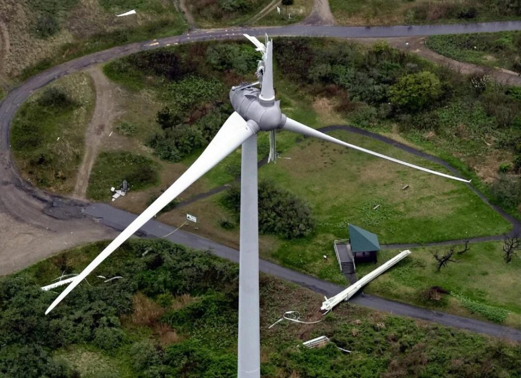 Lopatka veternej turbíny sa odlomila a spadla. Pri páde trafila 81-ročného muža jazdiaceho na bicykli, ktorý zahynul. Incident z 2. mája 2025 z mesta Akita, Japonsko.